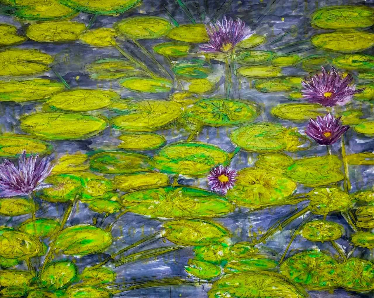 Atlantis Waterlilies, Encaustic on Canvas. 2019
